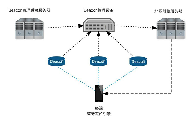 終端側(cè)定位系統(tǒng)由終端設(shè)備(如嵌入SDK軟件包的手機)和beacon組成。其具體定位原理是: